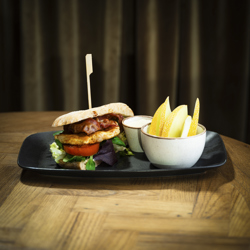 HalloumiburgareSrirachamajo, tomat, grönsallad, stekt svamp, picklad rödl... 225,- |