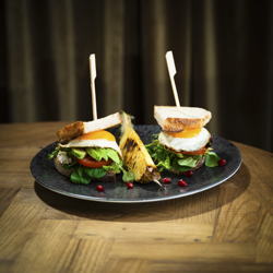Halloumi- & AvokadosalladStekt svamp, granatäppelkärnor, ruccola och mangosalsa. Va... 195,- |