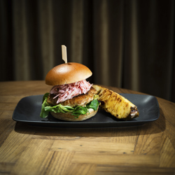 Kycklingburgare med BourbonglazeChipotleaioli och sallad. Toppad med bourbonglaze och pinksl... 159,- |
