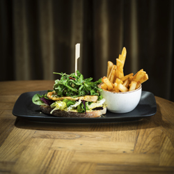 Pepparstek av Oxfilé 250gMed broccolini, majskräm, pepparsås och pommes frites 449,- |