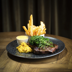 Entrecôte 250gMed broccolini, majskräm, bearnaise och pommes frites 408,- |