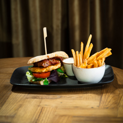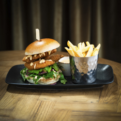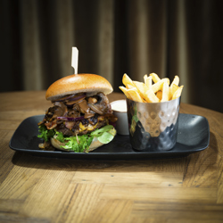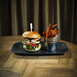 HalloumiburgareSrirachamajo, tomat, grönsallad, stekt svamp, picklad rödl... 225,- |
