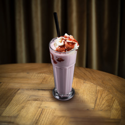 Jordgubb MilkshakeToppas med grädde och mini marshmallows 79,- |