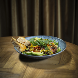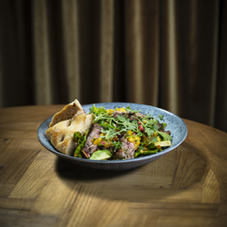 BiffsalladRyggbiff, stekt svamp, mangosalsa, avokado, ruccola och gran... 245,- |