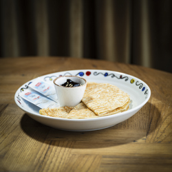 PannkakorMed vispad grädde, jordgubbssylt och socker. 79,- |