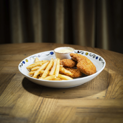 Chickenfingersmed pommes frites och mango-/jordnötssås. 99,- |