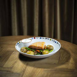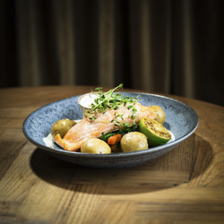 ÖringGräddfil, stekta färska grönsaker, småpotatis och timjan. 108,- |