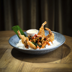 Kycklingwok med Friterade RäkorKyckling och friterade vannameiräkor med sweet chilli-sås,... 226,- |