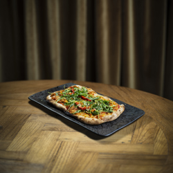 Pizza GenoveseKyckling, pesto och ruccolasallad 198,- |