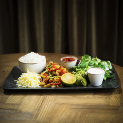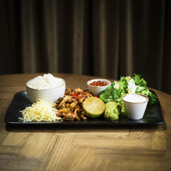 Vegetarisk FajitasVetetortillas, guacamole, ost, sallad, mexigarnityr, majs, e... 233,- |