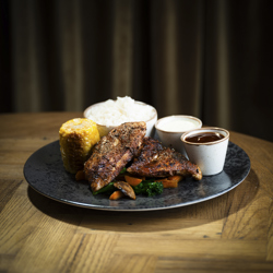 Blackenedstekt KycklingKycklingbröstfiléer med broccolini, morot, svamp, majskolv, ... 256,- |