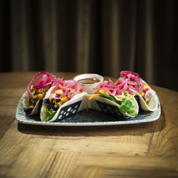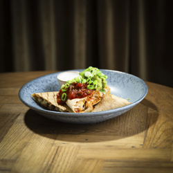 Vegetarisk QuesadillasOst, majs och edamamebönor. Toppas med guacamole, chunky sa... 189,- |
