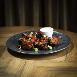 Buffalo WingsSlungade i bourbonglaze. Chili och salladslök. Vitlöksdipp 159,- |