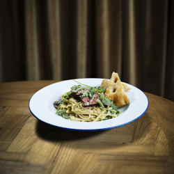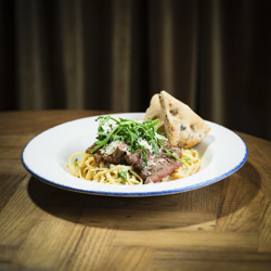 Pasta Ryggbiff med TryffeloljaRyggbiff, ruccola och svamp 245,- |