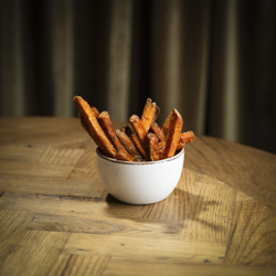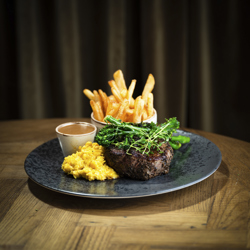 Pepparstek av Oxfilé 250gMed broccolini, majskräm, pepparsås och pommes frites 449,- |