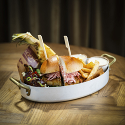 ChickenpartyKycklingburgare med bourbonglaze och pinkslaw. Buffalowings,... 279,- |